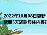 这两天关于2022年10月08日更新 捷信最晚可以推迟几天还款 一般可以延期5天还款具体内容详细介绍这方面的信息是受到的大家的关注度比较 浏览全文>>