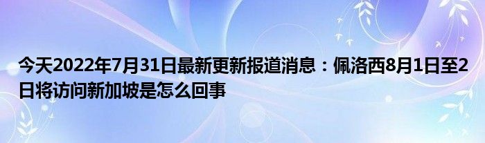 今天2022年7月31日最新更新报道消息:佩洛西8月1日至2日将访问新加坡是怎么回事
