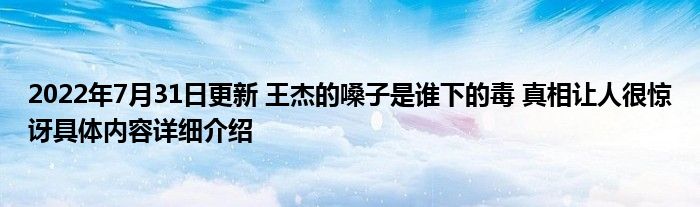 这两天关于2022年7月31日更新 王杰的嗓子是谁下的毒 真相让人很惊讶具体内容详细介绍这方面的信息是受到的大家的关注度比较高,很多人