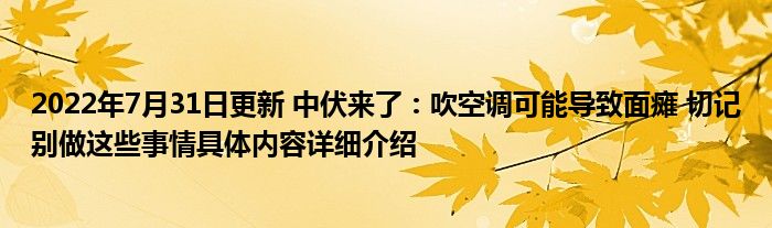 2022年7月31日更新 中伏来了:吹空调可能导致面瘫 切记别做这些事情具体内容详细介绍