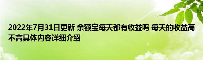 2022年7月31日更新 余额宝每天都有收益吗 每天的收益高不高具体内容详细介绍