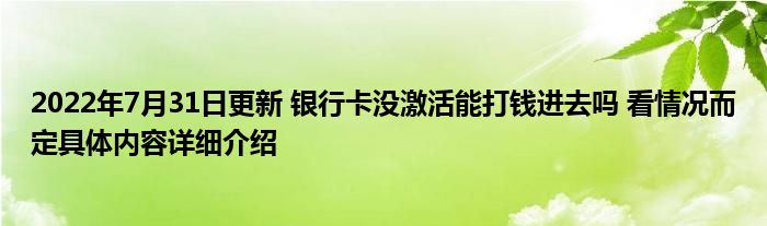2022年7月31日更新 银行卡没激活能打钱进去吗 看情况而定具体内容详细介绍