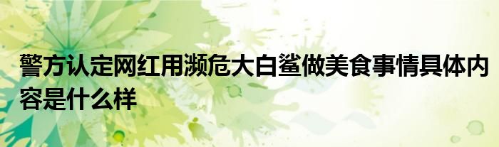 这两天关于警方认定网红用濒危大白鲨做美食事情具体内容是什么样这方面的信息是受到的大家的关注度比较高,很多人也是想要明白警方认定网