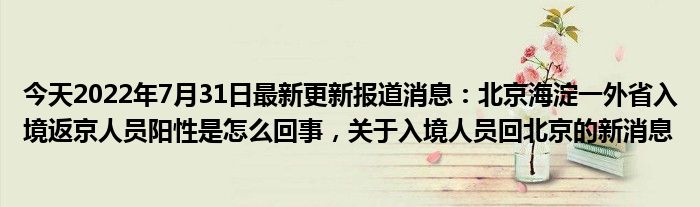 今天2022年7月31日最新更新报道消息:北京海淀一外省入境返京人员阳性是怎么回事,关于入境人员回北京的新消息