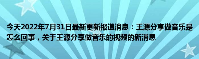 今天2022年7月31日最新更新报道消息:王源分享做音乐是怎么回事,关于王源分享做音乐的视频的新消息