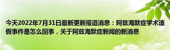今天2022年7月31日最新更新报道消息:阿兹海默症学术造假事件是怎么回事,关于阿兹海默症新闻的新消息