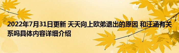 这两天关于2022年7月31日更新 天天向上欧弟退出的原因 和汪涵有关系吗具体内容详细介绍这方面的信息是受到的大家的关注度比较高,很多