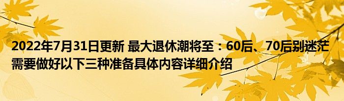 2022年7月31日更新 最大退休潮将至:60后、70后别迷茫 需要做好以下三种准备具体内容详细介绍