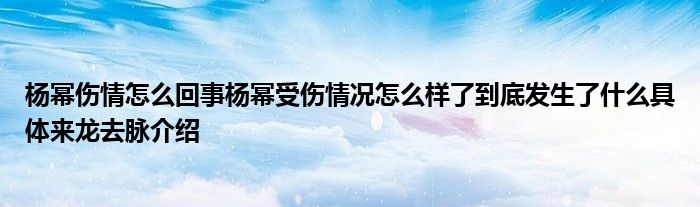 这两天关于杨幂伤情怎么回事杨幂受伤情况怎么样了到底发生了什么具体来龙去脉介绍这方面的信息是受到的大家的关注度比较高,很多人也是想