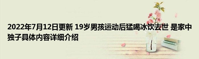 2022年7月12日更新 19岁男孩运动后猛喝冰饮去世 是家中独子具体内容详细介绍