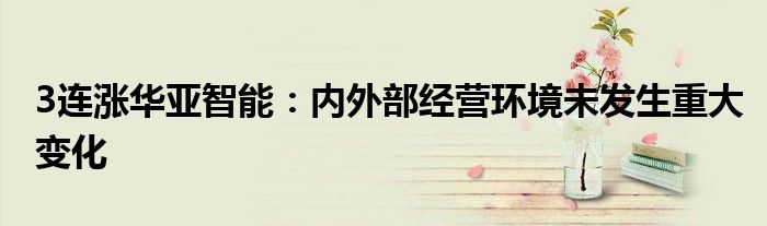 3连涨华亚智能:内外部经营环境未发生重大变化