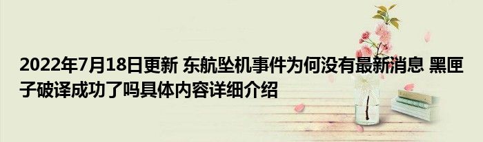 2022年7月18日更新 东航坠机事件为何没有最新消息 黑匣子破译成功了吗具体内容详细介绍