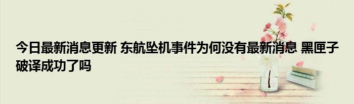 今日最新消息更新 东航坠机事件为何没有最新消息 黑匣子破译成功了吗