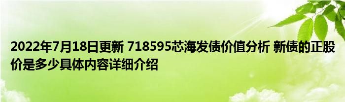 2022年7月18日更新 718595芯海发债价值分析 新债的正股价是多少具体内容详细介绍