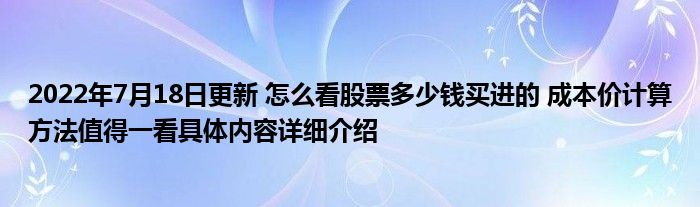 2022年7月18日更新 怎么看股票多少钱买进的 成本价计算方法值得一看具体内容详细介绍