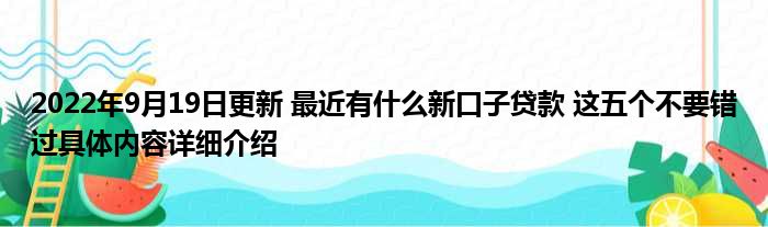 2022年9月19日更新 最近有什么新口子贷款 这五个不要错过具体内容详细介绍