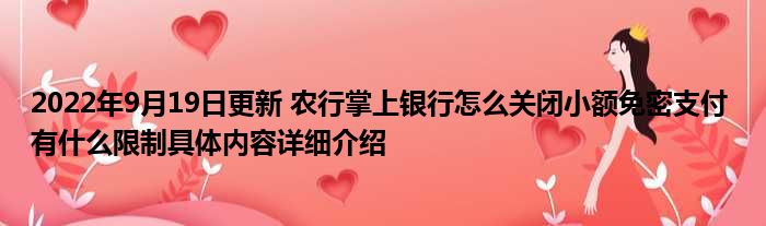 2022年9月19日更新 农行掌上银行怎么关闭小额免密支付 有什么限制具体内容详细介绍