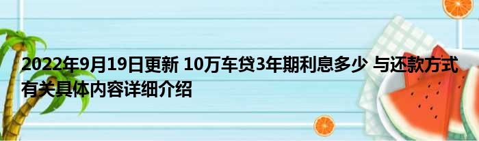 这两天关于2022年9月19日更新 10万车贷3年期利息多少 与还款方式有关具体内容详细介绍这方面的信息是受到的大家的关注度比较高,很多人