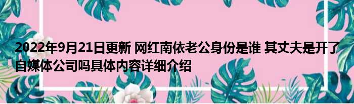 2022年9月21日更新 网红南依老公身份是谁 其丈夫是开了自媒体公司吗具体内容详细介绍