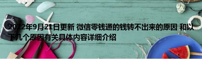 2022年9月21日更新 微信零钱通的钱转不出来的原因 和以下几个原因有关具体内容详细介绍