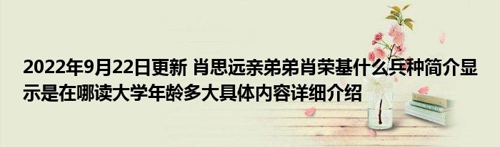 这两天关于2022年9月22日更新 肖思远亲弟弟肖荣基什么兵种简介显示是在哪读大学年龄多大具体内容详细介绍这方面的信息是受到的大家的关
