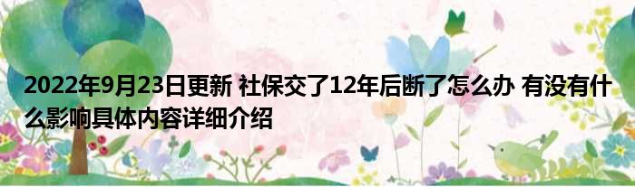 2022年9月23日更新 社保交了12年后断了怎么办 有没有什么影响具体内容详细介绍