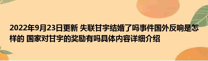 这两天关于2022年9月23日更新 失联甘宇结婚了吗事件国外反响是怎样的 国家对甘宇的奖励有吗具体内容详细介绍这方面的信息是受到的大家