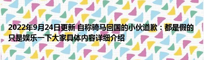 2022年9月24日更新 自称骑马回国的小伙道歉:都是假的 只是娱乐一下大家具体内容详细介绍