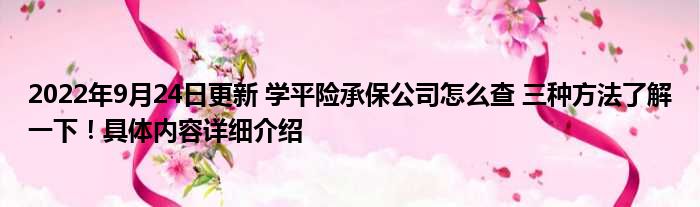 这两天关于2022年9月24日更新 学平险承保公司怎么查 三种方法了解一下!具体内容详细介绍这方面的信息是受到的大家的关注度比较高,很多人也是想要明白2022年9月24日更新 学平险承保公司怎么查 三种方法了解一下!具体内容详细介绍具体的详情,那么小编今天也是特地在网上收集了一些关于这方面的信息内容来分享给大家,大家感兴趣的话可以接着看下面的文章。