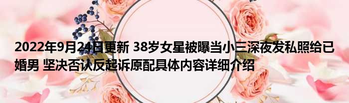 2022年9月24日更新 38岁女星被曝当小三深夜发私照给已婚男 坚决否认反起诉原配具体内容详细介绍