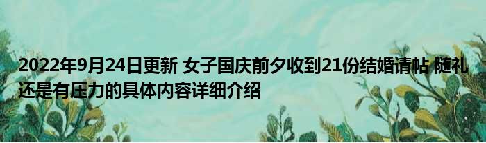 这两天关于2022年9月24日更新 女子国庆前夕收到21份结婚请帖 随礼还是有压力的具体内容详细介绍这方面的信息是受到的大家的关注度比较