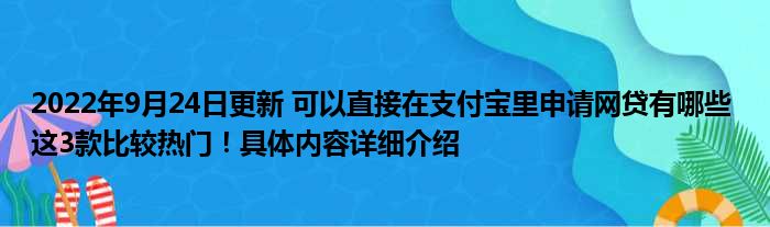 这两天关于2022年9月24日更新 可以直接在支付宝里申请网贷有哪些 这3款比较热门!具体内容详细介绍这方面的信息是受到的大家的关注度比