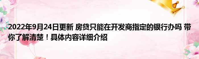 这两天关于2022年9月24日更新 房贷只能在开发商指定的银行办吗 带你了解清楚!具体内容详细介绍这方面的信息是受到的大家的关注度比较