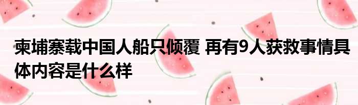 柬埔寨载中国人船只倾覆 再有9人获救事情具体内容是什么样