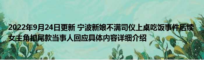 2022年9月24日更新 宁波新娘不满司仪上桌吃饭事件后续 女主角扣尾款当事人回应具体内容详细介绍