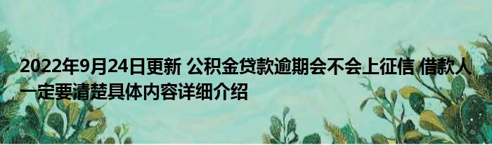 2022年9月24日更新 公积金贷款逾期会不会上征信 借款人一定要清楚具体内容详细介绍