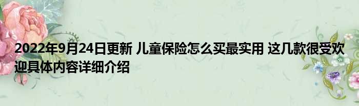 2022年9月24日更新 儿童保险怎么买最实用 这几款很受欢迎具体内容详细介绍