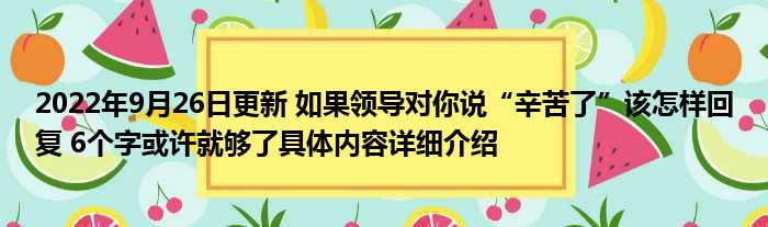 2022年9月26日更新 如果领导对你说“辛苦了”该怎样回复 6个字或许就够了具体内容详细介绍