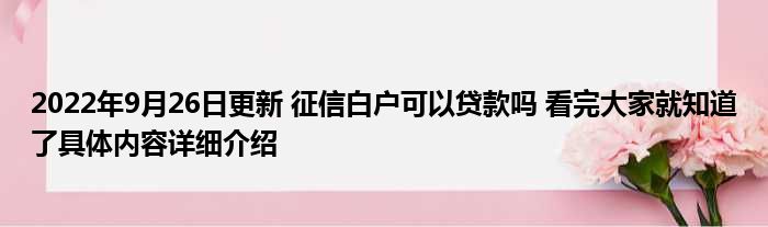 2022年9月26日更新 征信白户可以贷款吗 看完大家就知道了具体内容详细介绍