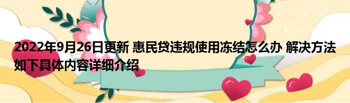 2022年9月26日更新 惠民贷违规使用冻结怎么办 解决方法如下具体内容详细介绍