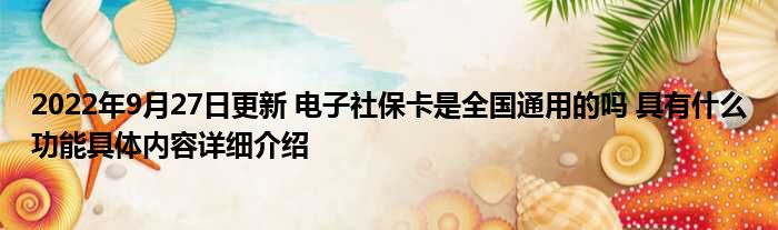 2022年9月27日更新 电子社保卡是全国通用的吗 具有什么功能具体内容详细介绍