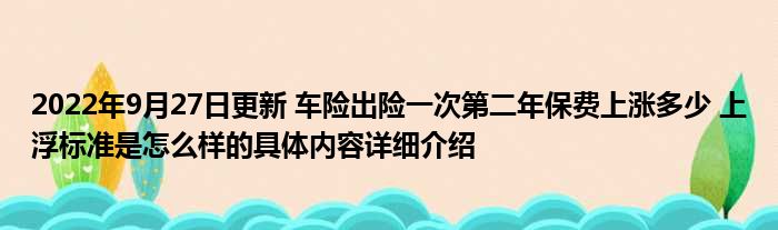 2022年9月27日更新 车险出险一次第二年保费上涨多少 上浮标准是怎么样的具体内容详细介绍