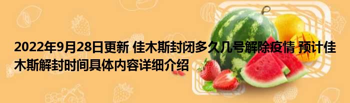 2022年9月28日更新 佳木斯封闭多久几号解除疫情 预计佳木斯解封时间具体内容详细介绍