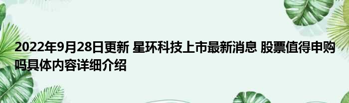 这两天关于2022年9月28日更新 星环科技上市最新消息 股票值得申购吗具体内容详细介绍这方面的信息是受到的大家的关注度比较高,很多人