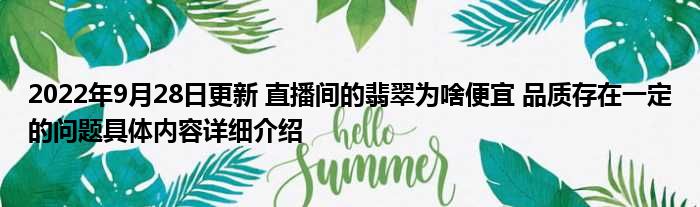 2022年9月28日更新 直播间的翡翠为啥便宜 品质存在一定的问题具体内容详细介绍