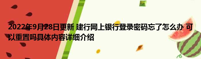 2022年9月28日更新 建行网上银行登录密码忘了怎么办 可以重置吗具体内容详细介绍
