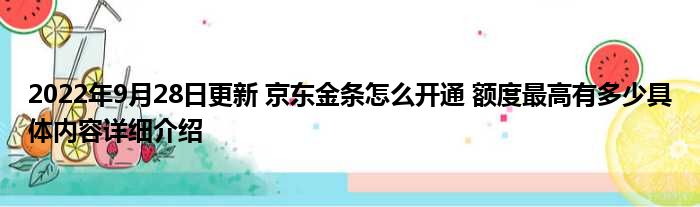 这两天关于2022年9月28日更新 京东金条怎么开通 额度最高有多少具体内容详细介绍这方面的信息是受到的大家的关注度比较高,很多人也是想要明白2022年9月28日更新 京东金条怎么开通 额度最高有多少具体内容详细介绍具体的详情,那么小编今天也是特地在网上收集了一些关于这方面的信息内容来分享给大家,大家感兴趣的话可以接着看下面的文章。