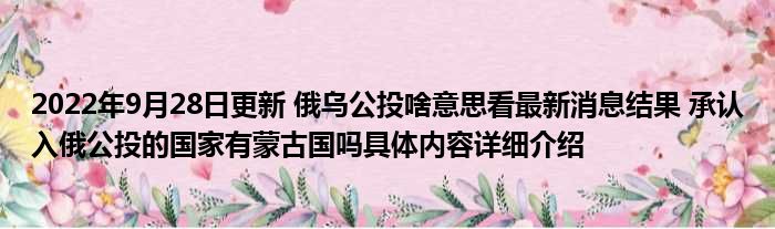 这两天关于2022年9月28日更新 俄乌公投啥意思看最新消息结果 承认入俄公投的国家有蒙古国吗具体内容详细介绍这方面的信息是受到的大家