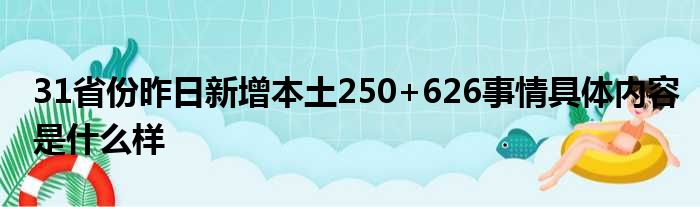 这两天关于31省份昨日新增本土250+626事情具体内容是什么样这方面的信息是受到的大家的关注度比较高,很多人也是想要明白31省份昨日新增本土250+626事情具体内容是什么样具体的详情,那么小编今天也是特地在网上收集了一些关于这方面的信息内容来分享给大家,大家感兴趣的话可以接着看下面的文章。