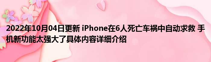 2022年10月04日更新 iPhone在6人死亡车祸中自动求救 手机新功能太强大了具体内容详细介绍